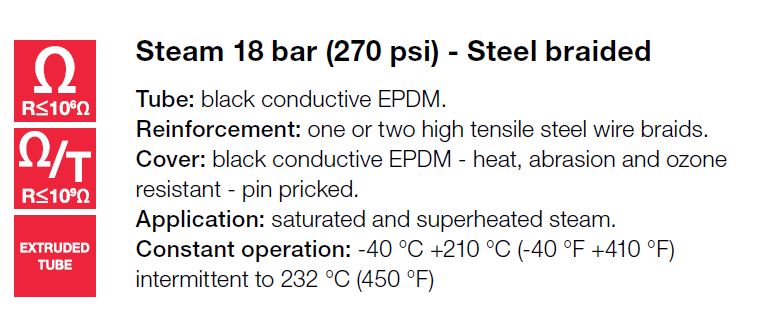 Alfagomma, Stoomslang, 1 of 2 gewikkelde staalinlagen - 18bar, 19 x 31 mm - 3/4", afname per mtr., type 340AA