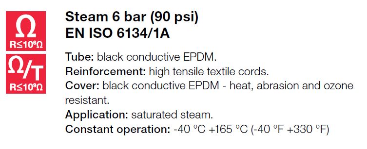 Alfagomma, Stoomslang, Textielinlagen - 6 bar, 38 x 54 mm - 1 1/2", afname per volle rol, 61 mtr., type 354AA