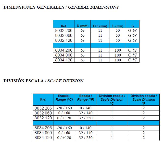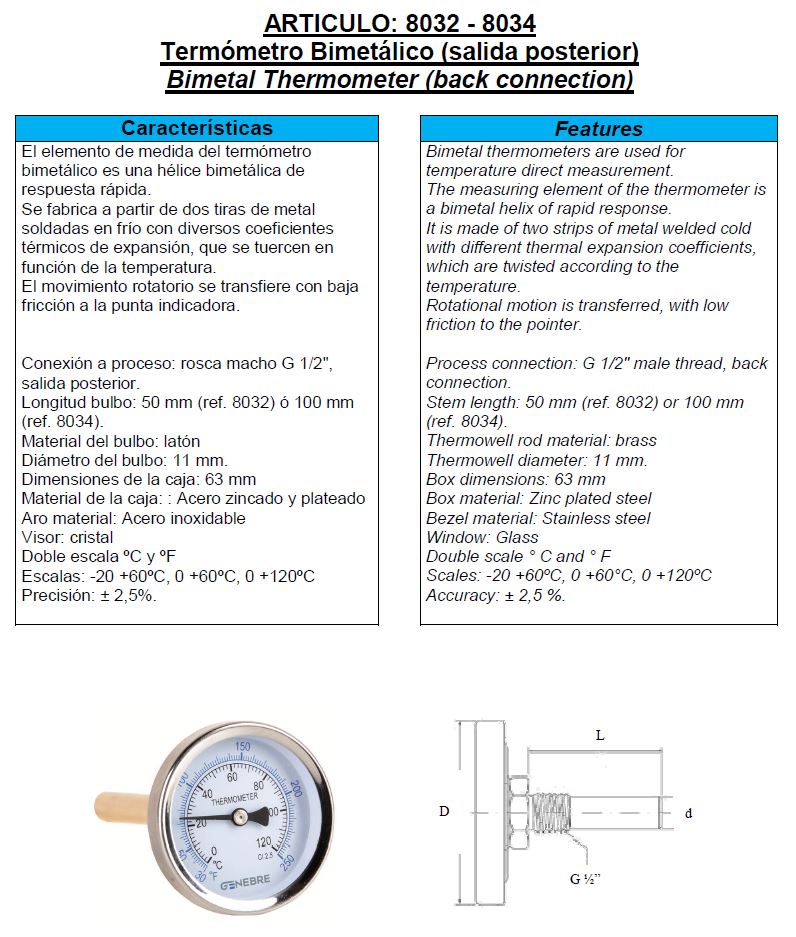 De Genebre bimetaal thermometers zijn toepasbaar in perslucht en vloeistof voerende systemen waar verzinkt staal resistent tegen is.[/br]