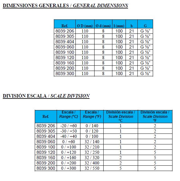De Genebre bimetaal thermometers zijn toepasbaar in perslucht en vloeistof voerende systemen waar RVS resistent tegen is.[/br]