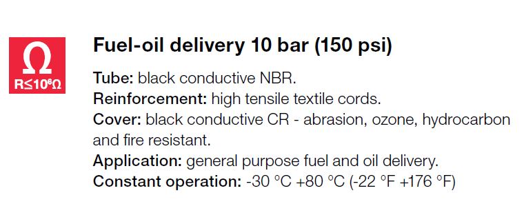 Alfagomma, Transportslang voor benzine en olie, Textielinlagen - 10 bar, 102 x 114 mm - 4", afname per volle rol, 61 mtr., type 650AA