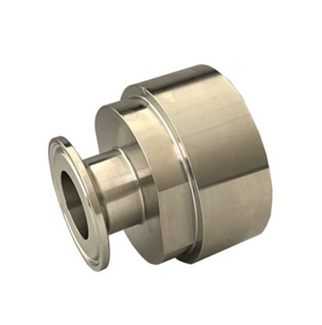 Tri-Clamp koppeling, RVS 316T, klemkoppeling met S60x6 IBC schroefdraad, S60x6 x 64 mm Clamp x IBC bi.dr. zonder pakking, toegepast in de voedingsmiddelen- en genotsindustrie, zuivelindustrie en chemische industrie, DIN 32676, 25 bar