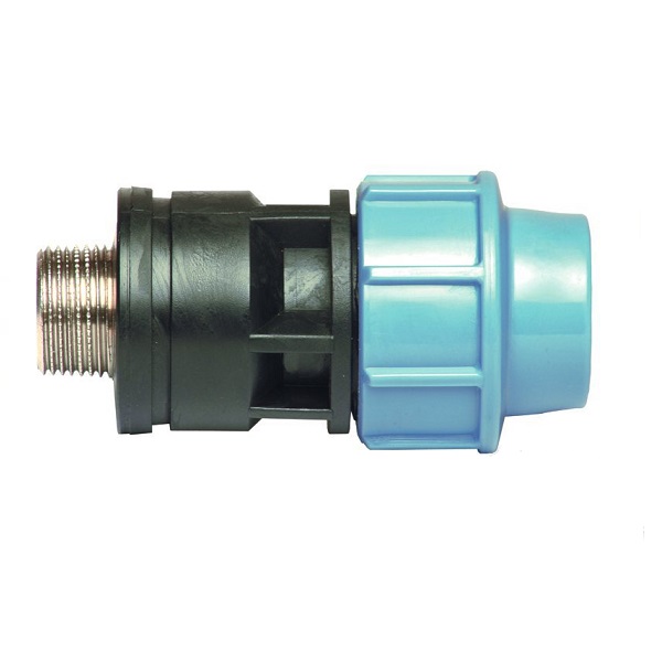 Unidelta Deltone PE rechte klemkoppeling, 25 mm x messing 3/4'' bu.dr., 16 bar, KIWA Keur