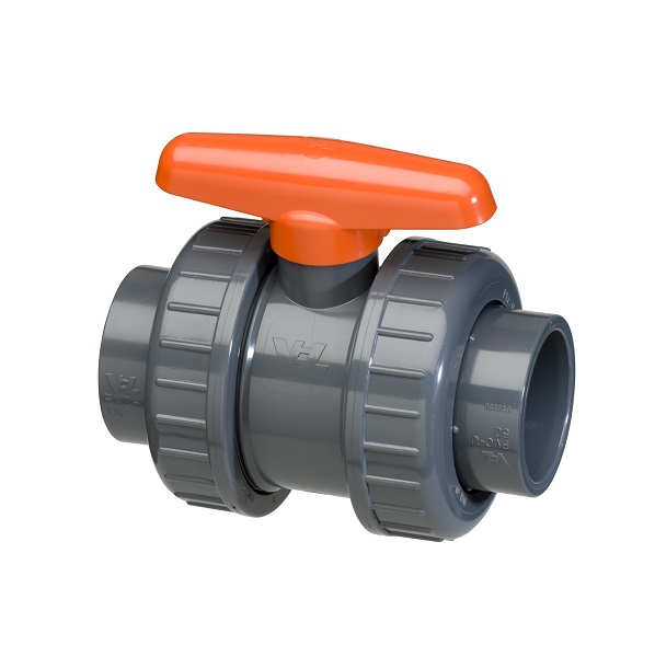 VdL PVC-U Kogelkraan 63 mm type DIL-A, 2 x wartel, EPDM dichting, oranje handgreep, PN16