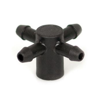 Irritec iDrop 90° verloopstuk type M04, met 4 x micro slang ID 3,0 mm aansluiting en montage op iDrop druppelaar, kleur zwart
