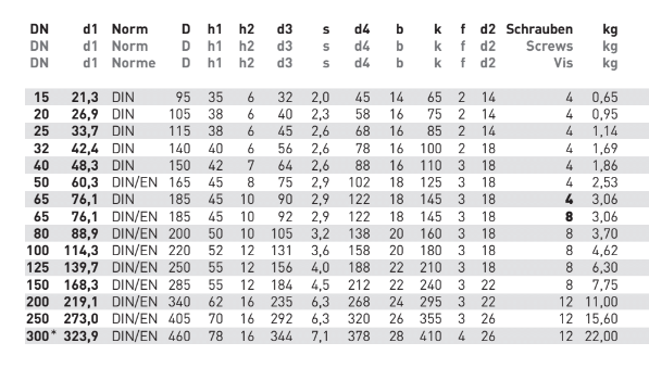 | Volgens norm (en) | ISO, DIN 2633 / EN 1092-1 |