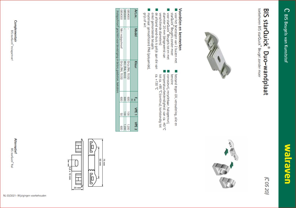 | 28000154 | Starquick Duo - wandplaat PA6 (polyamide) grijs, HOH 50 mm | € 2,57 | 15,00 % | € 2,18 |