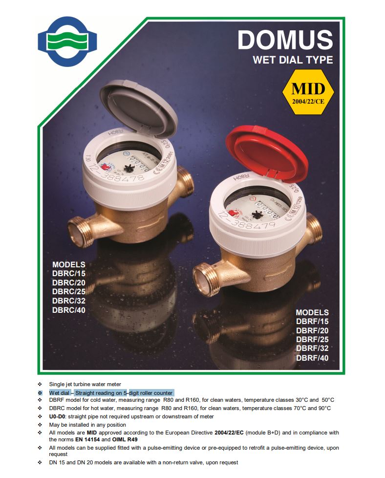 | Productsoort | DOMUS DBRF natlopend telwerk / koud water, MID R80 110 mm |