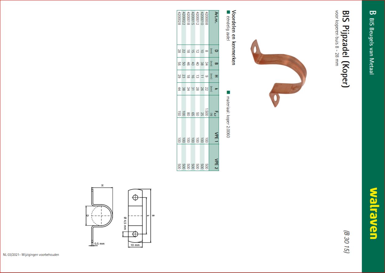 Voor koperen buis Voordelen & kenmerken: * Eendelig zadel * Materiaal: koper 2.0060[/br]
