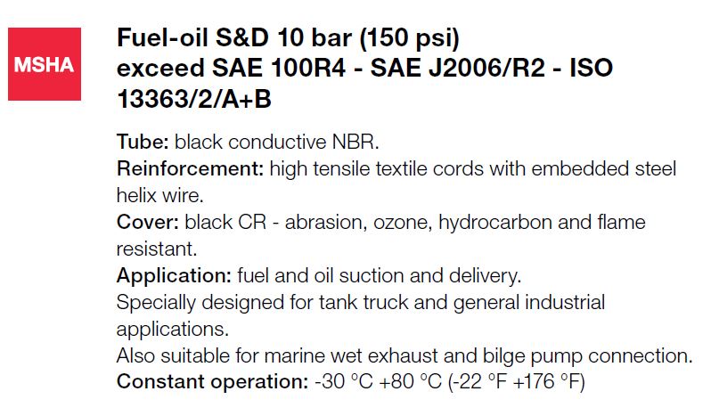 | Volgens norm (en) | SAE 100R4 - SAE J2006/R2 - ISO 13363/2/A+B |