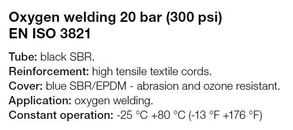 Alfagomma, Zuurstof lasslang blauw, Textielinlage met hoge treksterkte 20 bar, 8 x 15 mm - 5/16", afname per volle rol, 100 mtr., type 076AE